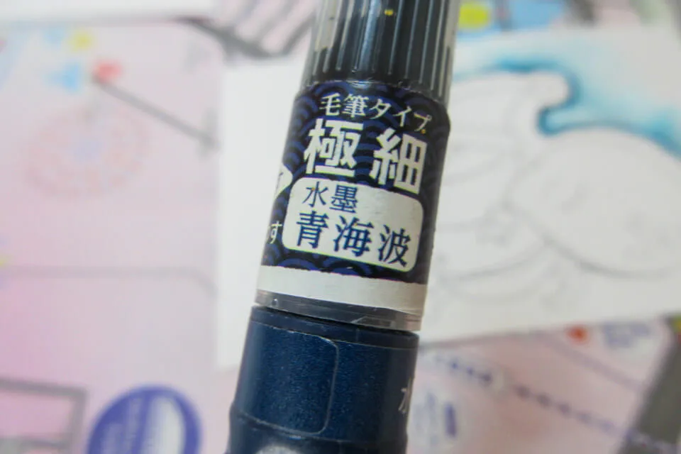 この筆で線を引くと、濃紺っぽい色が出てくる。
