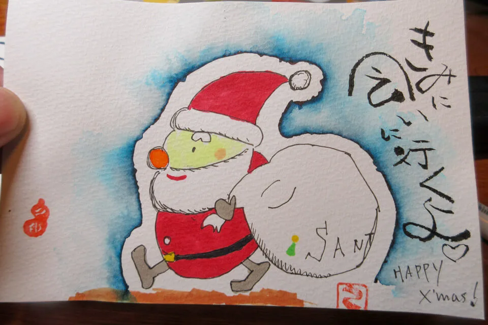 サンタさん、静かな針葉樹林、もみの木…とにかく年末を明るく彩ってくれる題材ばかりを選んで描いてみた。