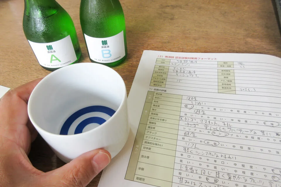 手元に届いた2本の課題酒を味わい、その香り・味・口当たりを言語化していく筆記形式の試験だ。