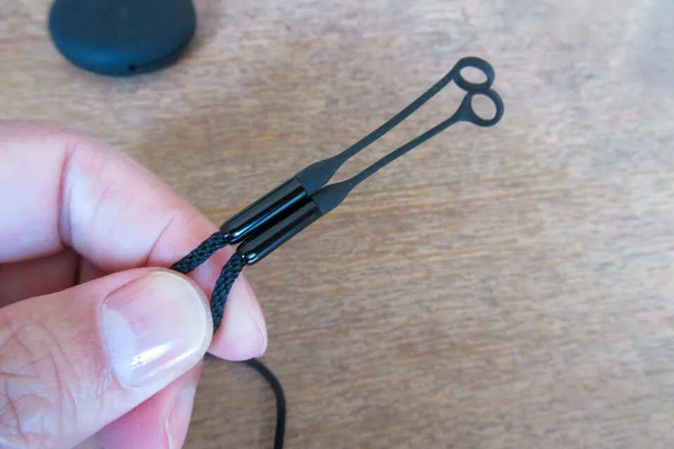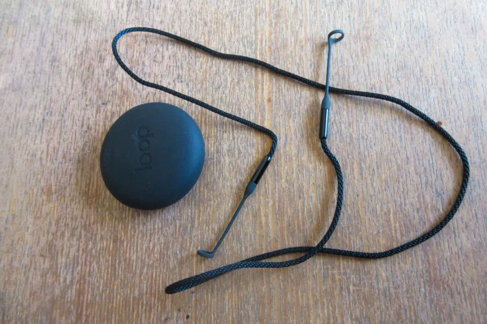 ヒモは両端がループになっていて、LOOP本体のイヤーチップを外してそこにはめ直すだけで取り付け完了