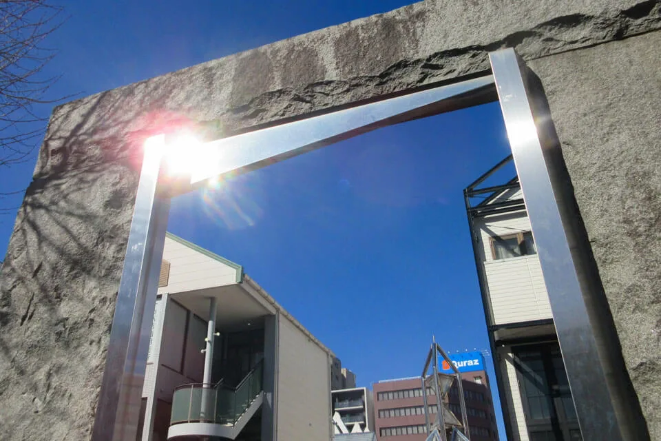 ずっと前から「なんだこの不思議な門は?」と思ってたんだけど、立ち止まってよく見たら上の方にギラリと刃が輝いていたんだ。