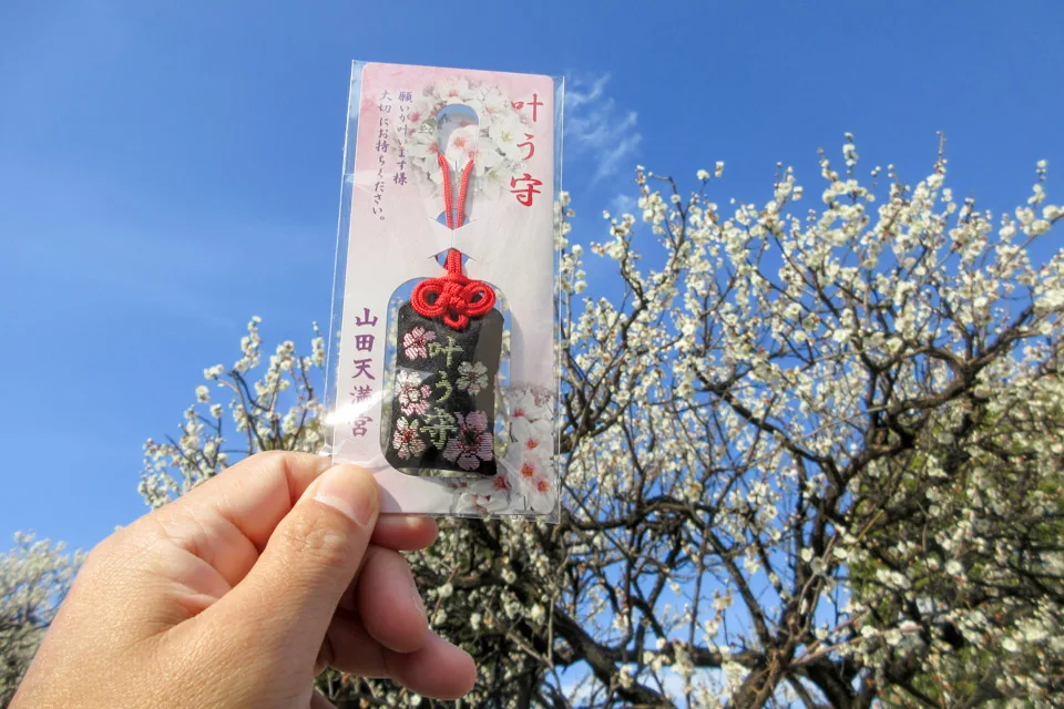 「叶う守」を手に、梅の力をもらう。